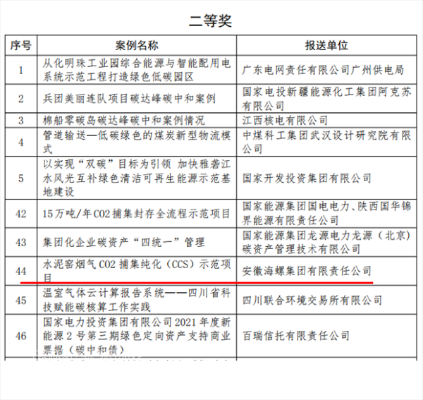 ●《水泥窯煙氣二氧化碳捕集純化與利用示范項目》榮獲安徽省十大低碳應用場景
