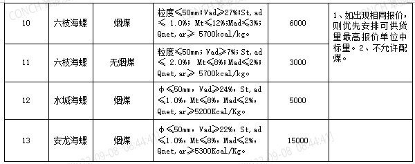 6.2022年9月21日至2022年10月20日合同期內(nèi),若中標(biāo)單位在2022年10月6日24時(shí)前供貨量(銷發(fā)系統(tǒng)進(jìn)廠數(shù)量)小于合同約定量的30%的中標(biāo)單位,不予以參與海螺水泥貴州區(qū)域2022年10月21日至2022年11月20日煤炭招標(biāo)(僅買方原因或不可抗力因素除外,鐵路在途和在站煤炭不給予納入供貨量,僅以進(jìn)廠數(shù)量為準(zhǔn)),并取消在貴州區(qū)域所有海螺6個(gè)月內(nèi)的投標(biāo)資格。