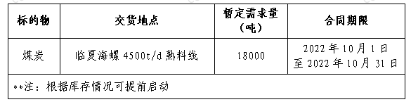 為做好我公司2022年煤炭采購(gòu)工作,滿足生產(chǎn)需要,本著“公開(kāi)、公平、公正”的原則,擬對(duì)煤炭貿(mào)易渠道供貨進(jìn)行公開(kāi)招標(biāo),現(xiàn)將招標(biāo)采購(gòu)信息發(fā)布如下: