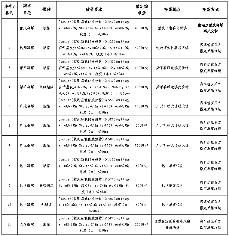 3、供應量要求:新供應商(未與區(qū)域內(nèi)任何一家子公司發(fā)生過煤炭業(yè)務合作的;與區(qū)域中斷煤炭合作時間達半年(含半年)以上的),單一標段定標量不超過10000噸。