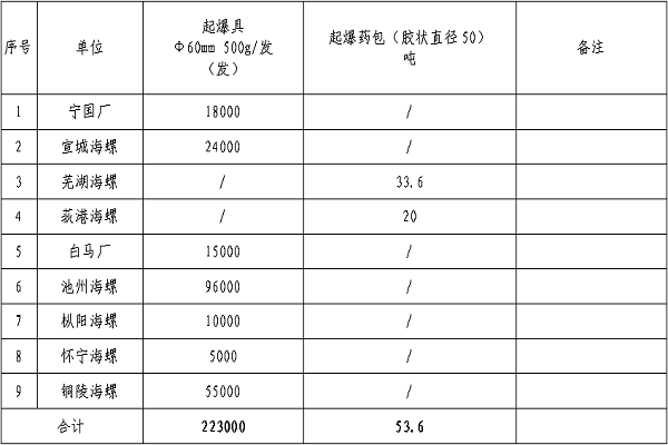 為做好安徽省內基地公司2023年度火工材料附屬產品采購工作,本著“公開、公平、公正、透明”的原則,開展火工材料附屬產品的招標工作,現將招標基本信息發布如下: