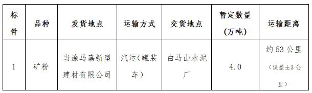 2.標段運輸起止:當涂馬嘉新型建材有限公司礦粉發(fā)運點至白馬山水泥廠指定卸貨地點。