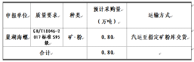 3.計劃采購數量:暫定采購總量0.80萬噸(具體使用數量根據招標人實際需求為準)。