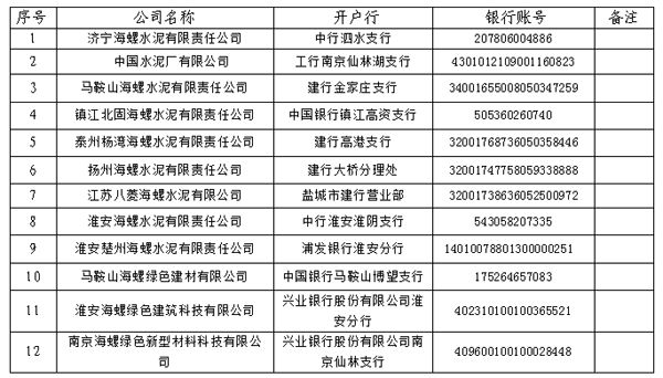 海螺水泥江蘇區(qū)域下屬十二家子公司參與招標,具體單位及聯(lián)系人如下: