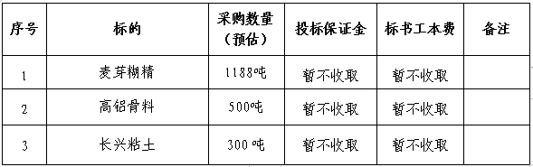 根據(jù)高鋁磚及堿性磚分廠2023年10-12月份產(chǎn)品生產(chǎn)計(jì)劃,結(jié)合前期麥芽糊精、高鋁骨料、粘土等3類原材料合同執(zhí)行及庫(kù)存消耗情況,為保證生產(chǎn)所需原材料有序銜接,同時(shí)進(jìn)一步降低采購(gòu)成本,現(xiàn)本著“公開(kāi)、公平、公正、透明”的原則公開(kāi)招標(biāo),誠(chéng)邀經(jīng)營(yíng)資質(zhì)能力較好、保供和服務(wù)能力較強(qiáng)的單位參加投標(biāo)。現(xiàn)就招標(biāo)相關(guān)事項(xiàng)公示如下: