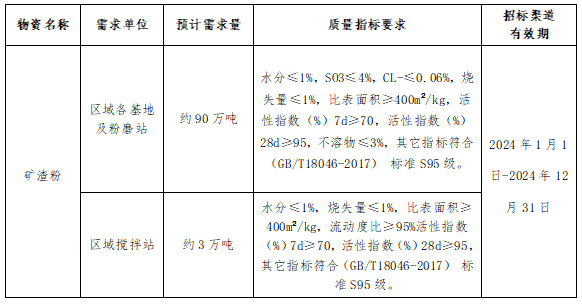 2.招標方式:采取公開招標方式,按礦渣粉質量指標要求確定區域礦渣粉中標的供貨入圍渠道。