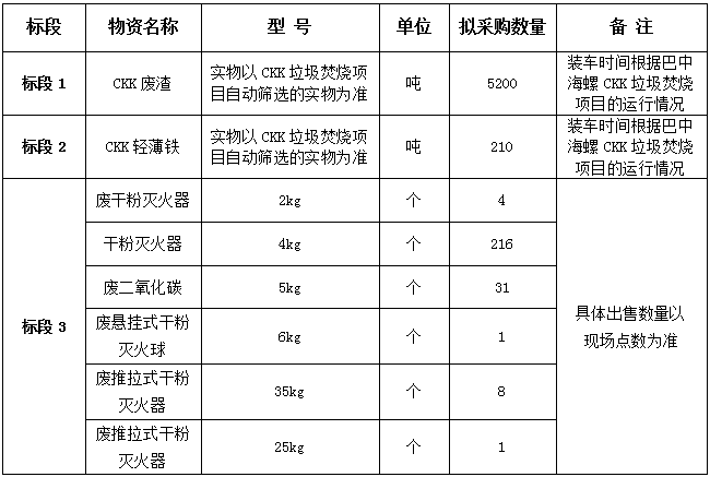2.標段2(CKK輕薄鐵)、標段3(廢滅火器)營業執照經營范圍需具備廢舊物資回收資質或再生資源回收經營范圍。