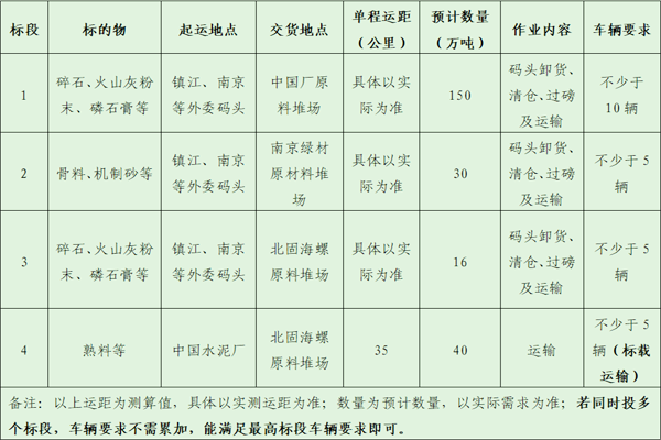 北固海螺擬委托安徽海慧供應鏈科技有限公司對中國廠、北固碼頭原材料運輸及北固熟料運輸項目進行公開招標,選定中標人。現將相關事宜公告如下:
