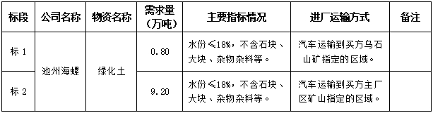 根據我公司生產經營及工程建設需要,現擬開展2024年度池州海螺綠化土采購招標,為規范物資采購行為,嚴格遵循公平、公正、公開的原則,現將招標采購信息發布如下: