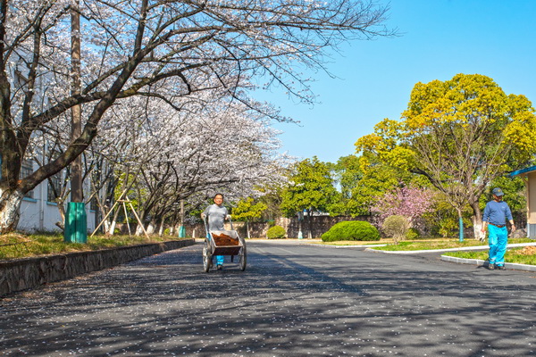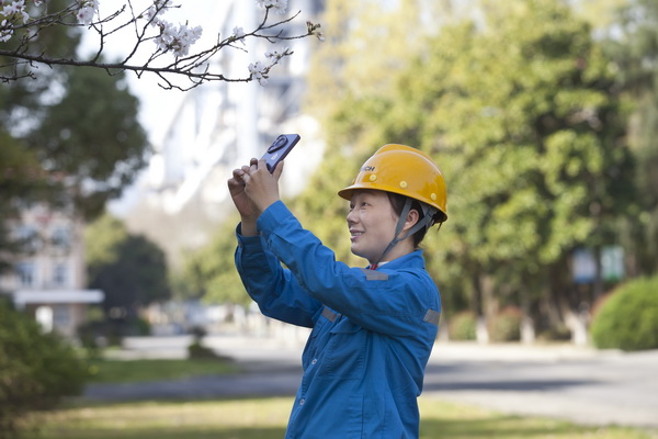 工業綠廊變身打卡勝地。清晨六點多,晨光穿透薄霧灑向廠區櫻花路,“錦繡大道”邊的十余樹櫻花已披上云霞般的輕紗。愛美的攝影人特意提前一個多小時到崗,手持相機捕捉光影變幻,路過的員工禁不住拿出手機,拍攝這動人的春光,年輕的女職員們,在櫻花樹下,在綠草地上,擺出各種造型,誓要將美麗的春光留下。