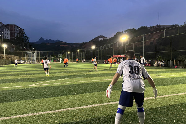 一聲聲吶喊,響徹球場,一場激情四射的足球友誼聯賽正在凌云縣伶站鄉足球場上演……