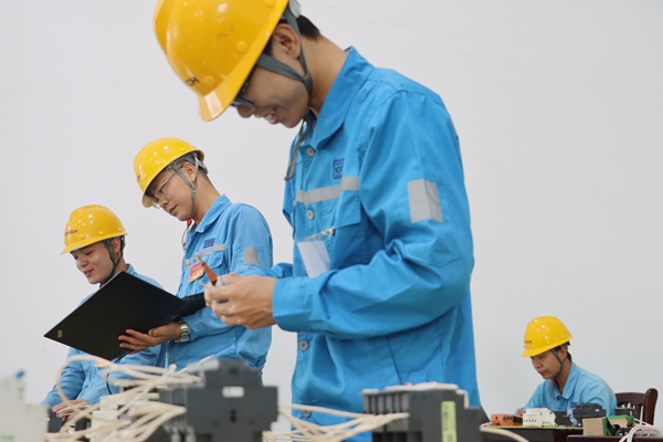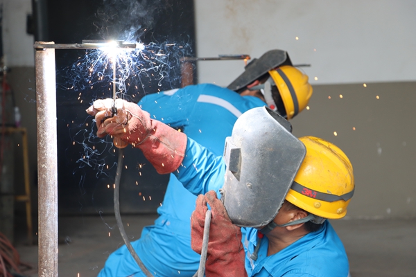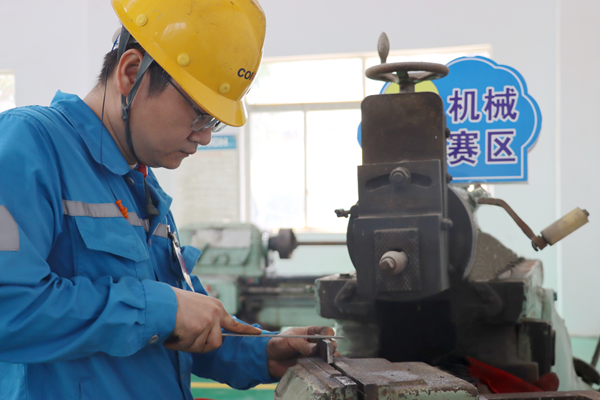 比武現(xiàn)場(chǎng)氣氛緊張熱烈,參賽選手全神貫注,各顯神通,紛紛“曬”出看家本領(lǐng)。在機(jī)械操作項(xiàng)目賽區(qū),焊工選手們嚴(yán)守安全操作規(guī)程,穿戴好勞動(dòng)防護(hù)用品,半蹲或半跪在地上,屏氣凝神,左手穩(wěn)穩(wěn)把住面罩,右手精準(zhǔn)操作焊槍,在焊條與金屬碰撞的瞬間,迸發(fā)出千萬點(diǎn)燦爛金花。另一邊,鉗工選手正站在操作臺(tái)前,身體微微前傾,細(xì)心打磨著自己的“得意之作”。品質(zhì)賽區(qū)的選手們也專注地投入在檢測(cè)操作當(dāng)中,從稱量到校準(zhǔn)全程精益求精,以近乎嚴(yán)苛的標(biāo)準(zhǔn)把控每個(gè)細(xì)節(jié),操作流程規(guī)范流暢,充分展現(xiàn)了質(zhì)檢人的專業(yè)素養(yǎng)。電氣賽區(qū)的選手們也不甘示弱,一個(gè)個(gè)化身為電流世界的“指揮官”,接線布置認(rèn)真細(xì)致,PLC編程操作行云流水,贏得聲聲贊嘆!