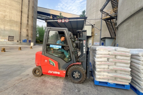 水泥分廠叉車司機胡順斌眼神正專注地望著倉庫內堆積如山的托盤水泥,雙手熟練地操控著方向盤。每一次精準的操作,都是為了更好地組織水泥發運。(馮圣乾/攝)