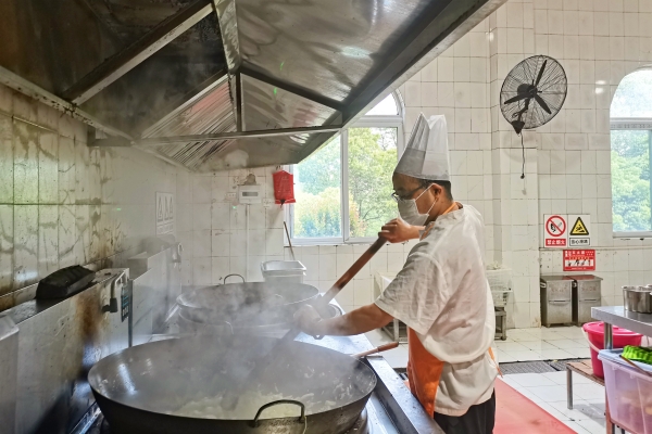 辦公室食堂廚師李晉濤正在制作全體職工午餐,他常說:“后勤保障工作很重要,現場職工太辛苦了,在‘能量補給’上面一點兒馬虎不得。”(楊玲/攝)