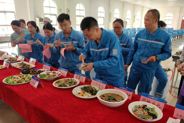 比賽要求每位廚師和每組團隊完成兩葷一素三個菜肴的制作。評委們從切配加工、味感、質感、觀感四個方面進行嚴格打分。經過激烈角逐,最終評選結果出爐:廚師組中,賴候劍榮獲第一名,秦炎獲得第二名,梁鵬取得第三名;員工組方面,水泥分廠隊斬獲一等獎,礦山分廠隊獲得二等獎,保全、生產、質控聯隊榮獲三等獎。這場廚藝大賽,不僅是一場美食的較量,更是團隊協作精神的生動體現。