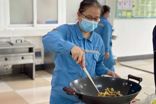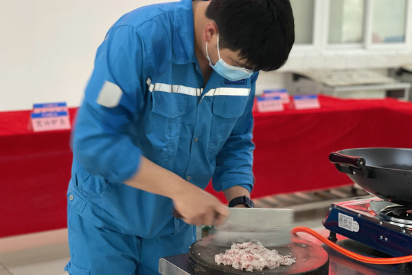 4月28日下午3點,公司員工大食堂搖身變為“廚藝技能大賽”的火熱賽場。率先登場的食堂專業廚師們一展身手,精湛刀工上下翻飛,火候拿捏精準到位,手撕牛肉紋理分明、金蟾吐瑞造型精巧、什錦涼拌菜色彩繽紛、生煎土雞香氣四溢,一道道色香味俱全的佳肴接連出鍋,引得現場觀眾駐足圍觀、聽著名字都流口水了。