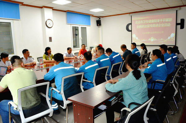 北流市衛健委到班組發放宣傳資料