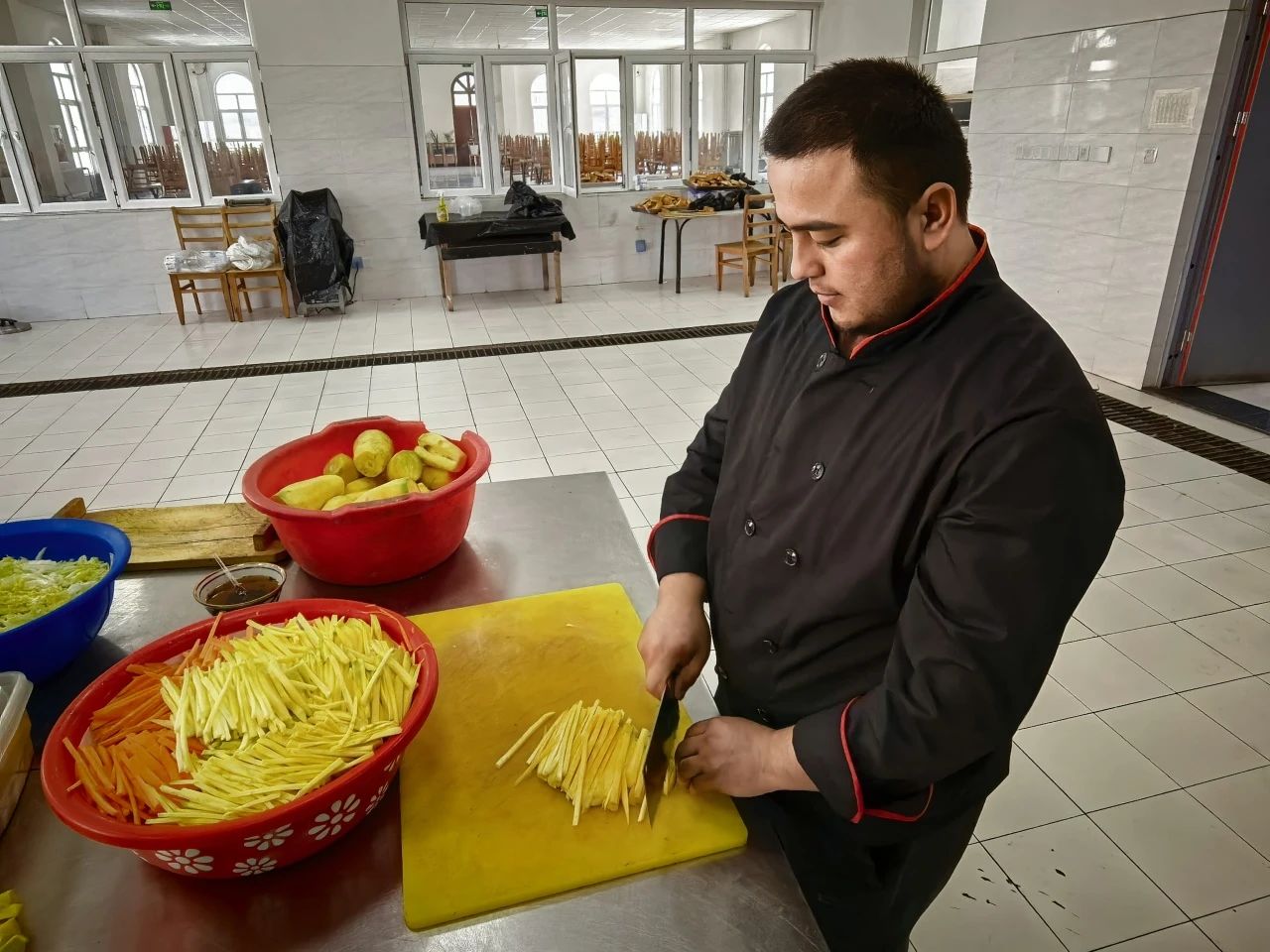 我叫YULDASHBOEV BUNYODBEK(冬唷德別克),是安集延海螺的一名廚師。每天我都和鍋碗瓢盆打交道,酸甜苦辣咸各種滋味都在案板和灶臺上完成。在做好烏茲傳統菜肴的同時,我還時常學習中國菜肴的制作方法,比如饅頭、餃子和辣椒炒肉,等等。每次看到大家吃的很開心的樣子,我心里就特別的滿足,這也是我工作的重要動力。今后,我還將持續努力,為大家帶來更多的美味。