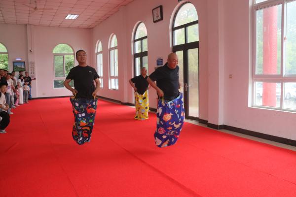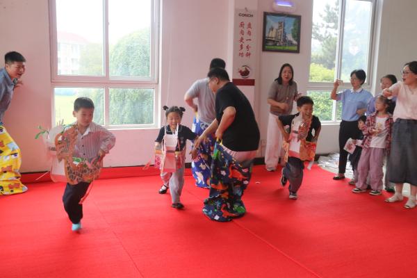 六一兒童節專屬的趣味游戲區同樣熱鬧非凡?!按笕舜筇?兒童劃龍船”游戲前,孩子們排著整齊隊伍,大聲呼叫,為爸爸媽媽加油打氣,“爸爸,快點跳,有人要追上你了……”“媽媽,加油,你是最厲害的……”, 爸爸媽媽們聽到孩子們的吶喊,牟足了勁往前跳,孩子們接棒成功后,飛快的跑了出去,贏得了周圍的小伙伴們陣陣歡呼。家長和孩子們默契配合,完成挑戰,在游戲中增進了親子感情。
