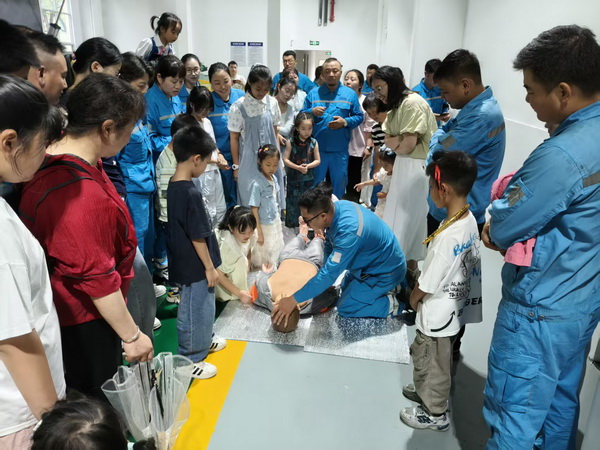 沉浸式體驗爸爸的工作日常,走進(jìn)爸爸的“第二個家”。家屬們在工廠講解員的帶領(lǐng)下,先后參觀了企業(yè)工廠廠史館、中控操作室以及安全實訓(xùn)基地。在廠史館,10歲的果果眼里寫滿新奇,“這是什么,那什么”問個不停,當(dāng)她發(fā)現(xiàn)工廠成長照片墻上爸爸的身影時,興奮著指給旁邊的媽媽看;在心肺復(fù)蘇假人模擬操作環(huán)節(jié),8歲的小小男子漢大樹在爸爸的手把手教學(xué)下,一邊數(shù)著“1、2、3……”一邊認(rèn)真地給假人模型做按壓式心肺復(fù)蘇。這種沉浸式體驗不僅讓孩子們觸摸到父親工作的溫度,還有對“爸爸為什么晚歸”的全新理解,更在稚嫩的心靈播下職業(yè)啟蒙的種子。