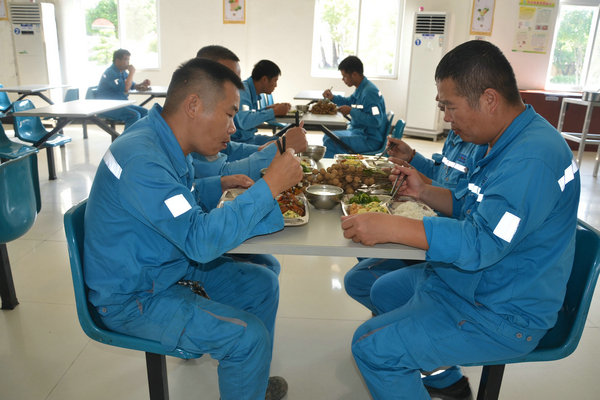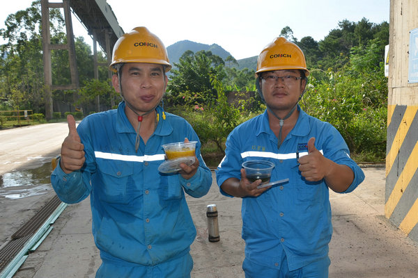 采摘下來的新鮮龍眼和檸檬很快被送往食堂,食堂師傅們忙碌起來,將飽滿多汁的龍眼剝殼取肉,檸檬切片榨汁,熬制當?shù)靥禺a(chǎn)涼粉草。龍眼果肉與檸檬片在清冽礦泉水中舒展,釋放出清甜與微酸的完美協(xié)奏;涼粉草熬制的“北流涼粉”,凝凍如墨玉,清涼解暑。天然原料經(jīng)巧手化作兩大消暑佳品——晶瑩剔透的龍眼檸檬水與地道爽滑的“北流涼粉”。冰鎮(zhèn)后的飲品帶著果香與涼意,被后勤人員分裝成杯,及時送到各崗位。