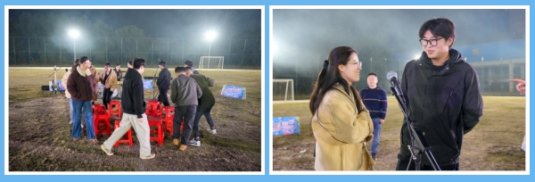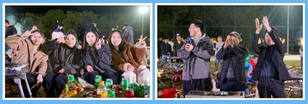 你看這邊的燒烤區,雖伴著冬季傍晚的微涼,卻處處洋溢著火熱的氣息。員工們自發組成燒烤小隊,分工協作、默契配合,有人熟練翻轉,精心控制火候讓食材能夠達到最佳風味;有人熱情分發調料和飲品,不時揮舞著熒光棒配合樂隊的演出節奏。平時忙于各自崗位的員工都在此刻化身為“燒烤大師”,在炊煙裊裊與歡聲笑語中,彼此間的距離迅速拉近,交流也變得自然而融洽。