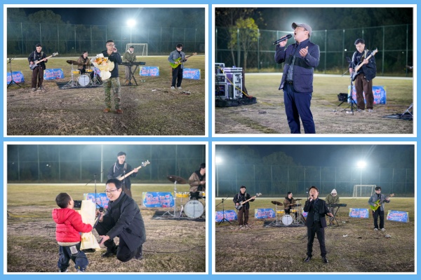 夜幕初垂,活動在激昂的樂隊演奏中拉開序幕。架子鼓、貝斯、鍵盤的旋律迅速點燃了全場熱情,來自水泥分廠的張勇以一首《一生不變》正式開啟整場音樂節的篇章。隨后,來自不同分廠的多位員工相繼登臺,一展歌喉,首首經典曲目演繹得深情動人,臺下掌聲熱烈,大家揮舞的熒光棒匯聚成一片璀璨星海。