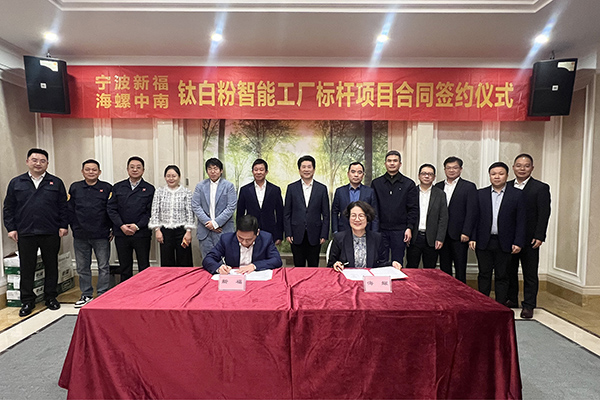 2025年12月2日下午,海螺中南與寧波新福鈦白粉公司“智能工廠EPC項目”合同簽約儀式在寧波新福公司辦公樓舉行,正在浙江區域調研的集團公司黨委書記、董事長楊軍親自出席并見證合同簽約。寧波新福董事長陸祥芳、常務副總經理陸镠、財務總監周英、總工程師邵國雄,海螺新材總經理虞節玉、海螺水泥副總經理吳鐵軍、總經理助理許越、浙江區域總裁陶勇及雙方公司相關人員共同出席了簽約儀式。