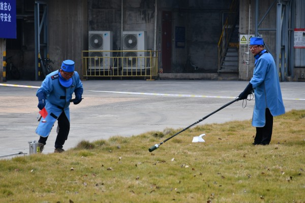 演練模擬益陽海螺公司工作人員對礦山皮帶輸送線礦料分析儀更換下來的1枚核素為锎Cf-252放射源(Ⅳ類源)進行轉移時,在廠內運輸途中丟失,可能造成工作人員誤照射。演練模擬情景屬一般輻射事件,益陽市人民政府對此事件啟動Ⅳ級應急響應,組織相關部門和單位開展應急處置措施。